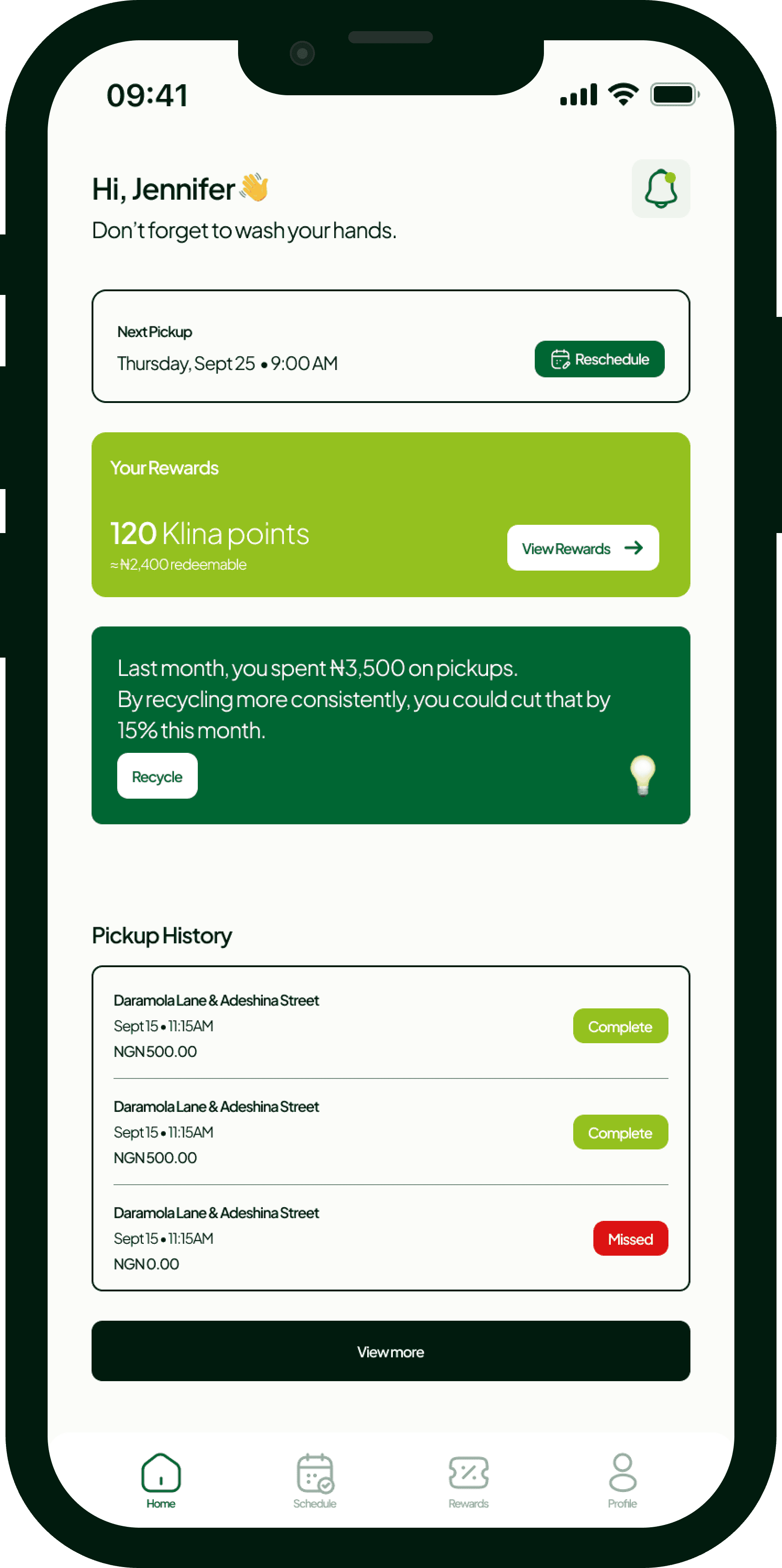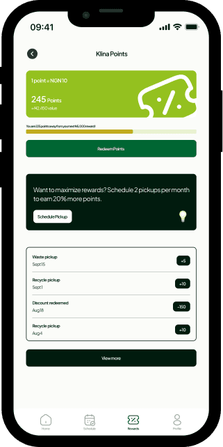 “Klina helped me turn recycling into real savings. In just 3 months, I withdrew ₦12,000 from eco-points and cashback.”
